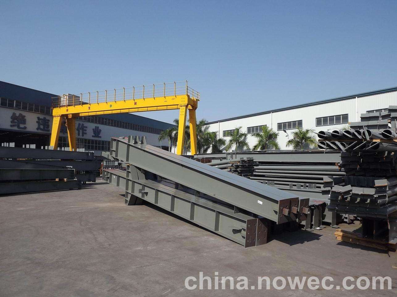 条状单元一般沿长跨方向分割,其宽度约为1~3个网格,其长度为l2或l2/2(l2为短跨跨距)。块状单元一般沿邓州网架平面纵横向分割成矩形或正方形单元。每个单元的重量以现有起重机能胜任为准。条(块)与条(块)之间可以直接拼装,也可空一网格在高空拼装。由于条(块)状单元是在地面拼装,因而高空作业量较高空散装法大为减少,拼装支架也减少很多,又能充分利用现有起重设备,故较经济。这种安装方法适用于分割后网架的钢度和受力状况改变较小的各类中小型网架,如两向正交正放四角锥、正放抽空四角锥等网架。